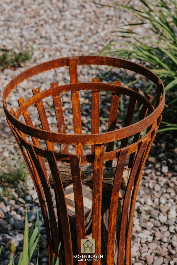 Feuerkorb Sacha mit seinen geschwungenen Linien und der hohen, eleganten Form (74 cm Höhe) wird dieser Feuerkorb garantiert zum Mittelpunkt jeder Sommernacht.