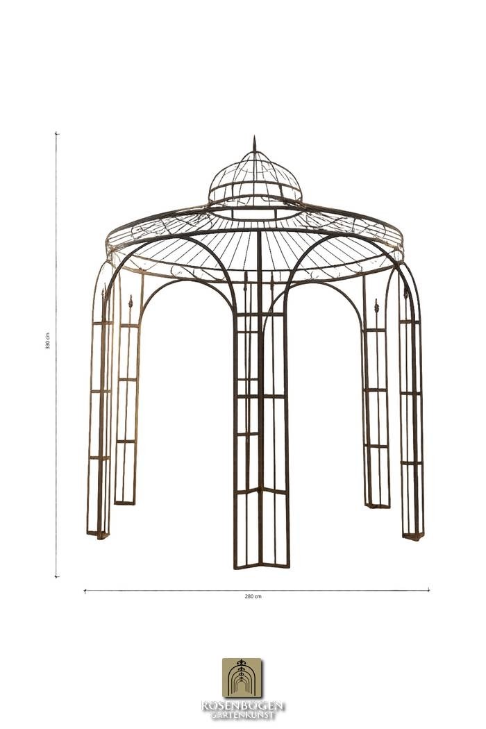 Der Gartenpavillon Ferrum wurde für Gärten konzipiert, in denen Platz, Stabilität und eine ausdrucksstarke Architektur gefragt sind. Mit einem Durchmesser von 370 cm und einer Höhe von 330 cm schafft dieser Pavillon eine beeindruckende Struktur, die sofort zum Blickfang im Garten wird. Das hohe Gewicht von 250 kg sorgt für außergewöhnliche Standfestigkeit und macht den Pavillon zu einer langlebigen Lösung für anspruchsvolle Gartenprojekte.