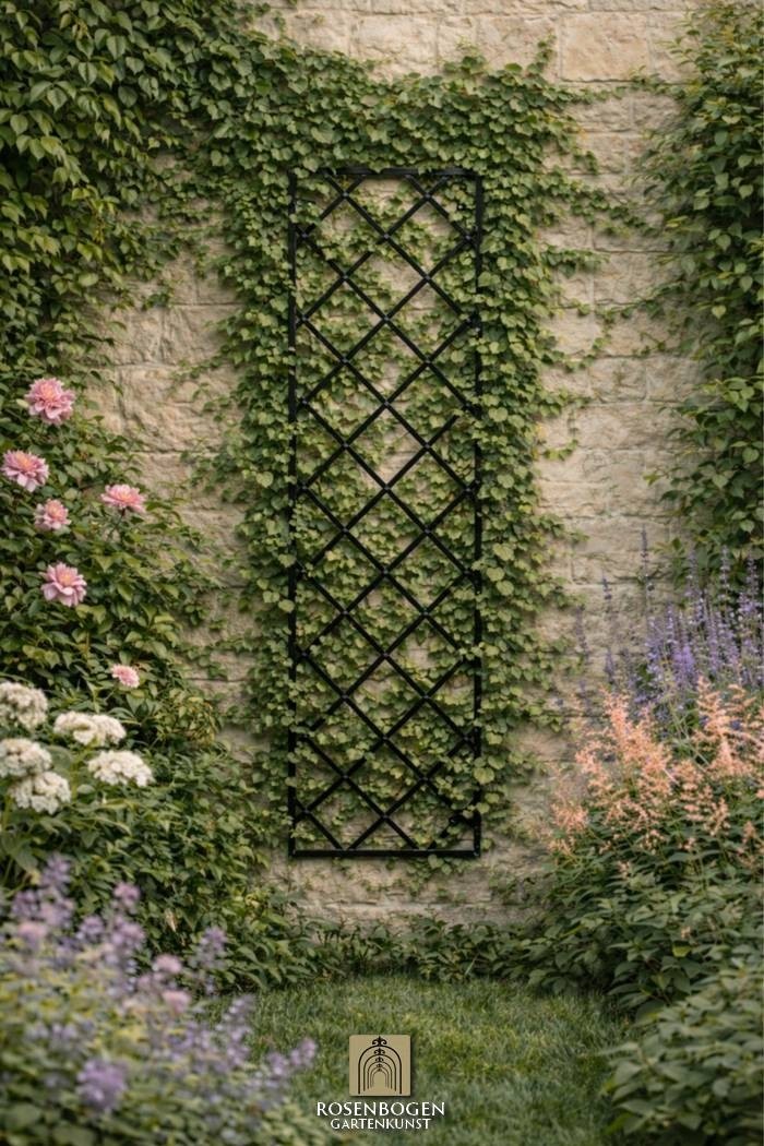 Massives Rankgitter TOBIAS aus handgefertigtem Eisen – robust, wetterfest und in drei edlen Ausführungen: Rost oder Schwarz.