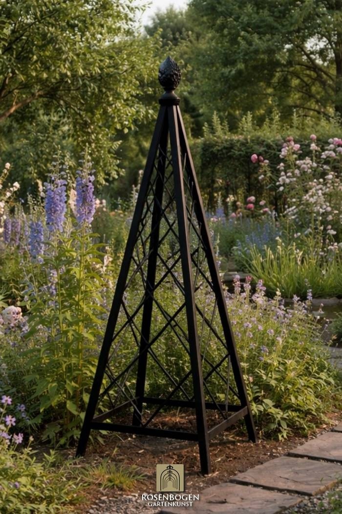 Gefertigt aus massivem Stahl und gekrönt mit einer dekorativen Abschlusszier in Zapfenform, vereint Charlotte zeitlose Ästhetik mit hoher Stabilität. Die geometrisch angeordneten Streben bieten zahlreiche Ansatzpunkte für Rankpflanzen wie Rosen, Clematis oder Efeu und unterstützen ein gleichmäßiges, natürliches Wachstum.