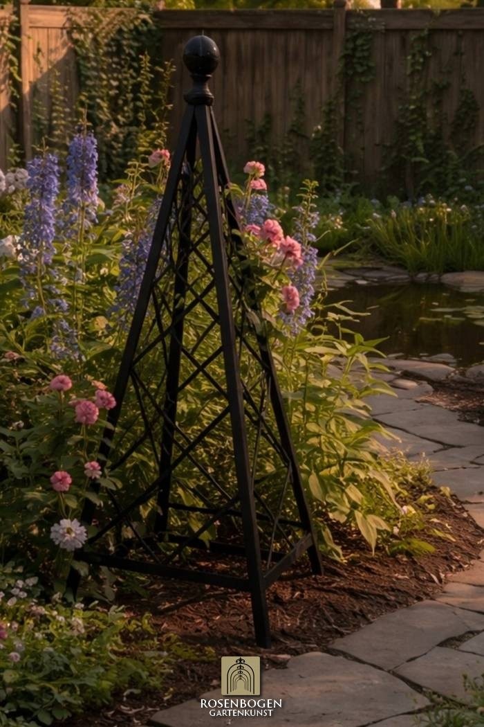 Die Rankhilfe Charlotte ist mehr als nur eine Stütze für Ihre Kletterpflanzen – sie ist ein echtes Gestaltungselement für stilvolle Gärten. Mit einer Höhe von 163 cm und einer Breite von 60 cm bringt Charlotte eine harmonische Form mit sich: stabil, funktional und dennoch fein gearbeitet. Die klare Pyramidenform sorgt für sicheren Halt bei kräftigem Pflanzenwuchs und setzt zugleich einen eleganten Akzent im Garten.