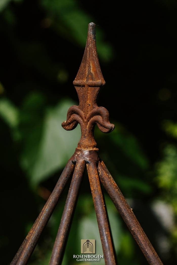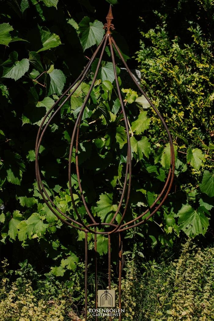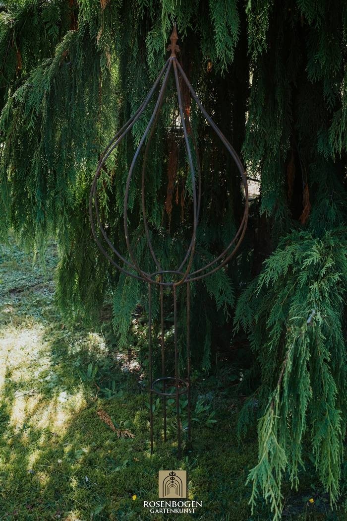 Stabile Rankhilfe HANS aus schwerem Eisen – handgefertigt, wetterfest und langlebig. Verfügbar in Rost, Schwarz oder feuerverzinkt.