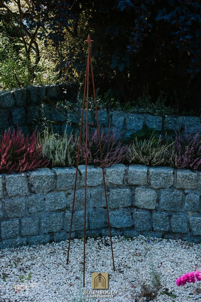 Rankhilfe PAUL aus Eisen – robust, stabil und in drei edlen Varianten: Rost, Schwarz pulverbeschichtet oder feuerverzinkt.