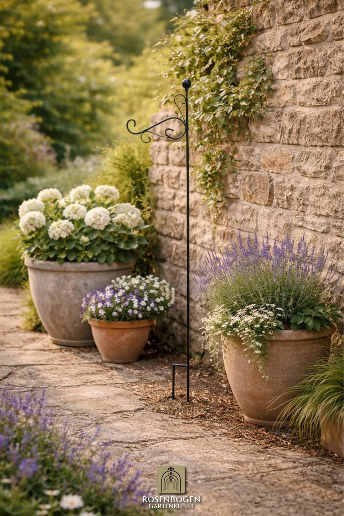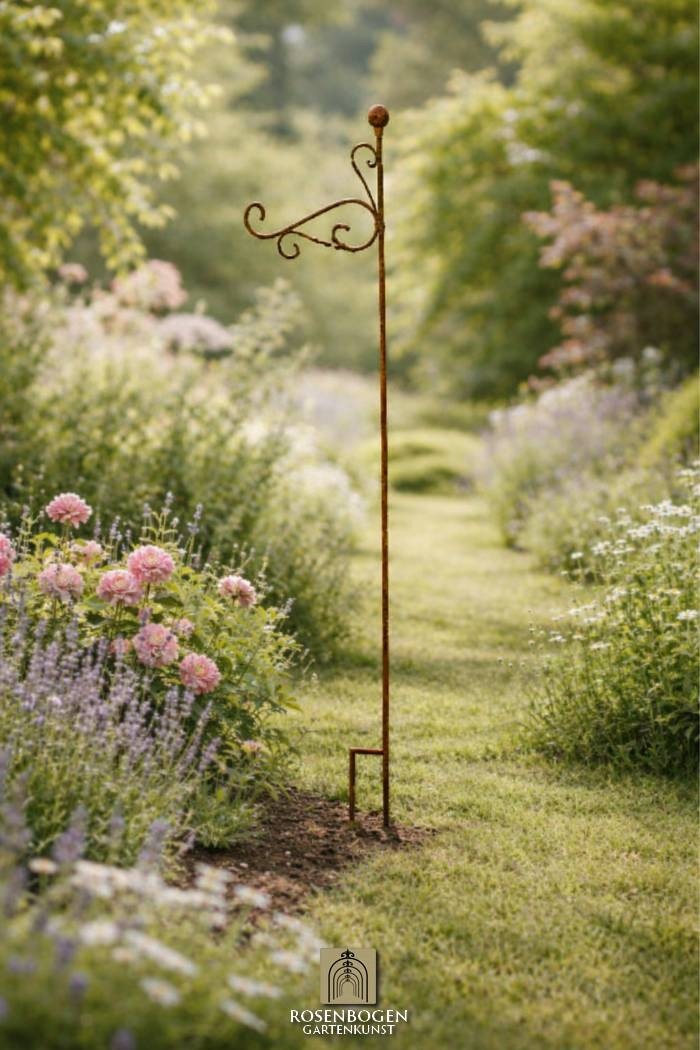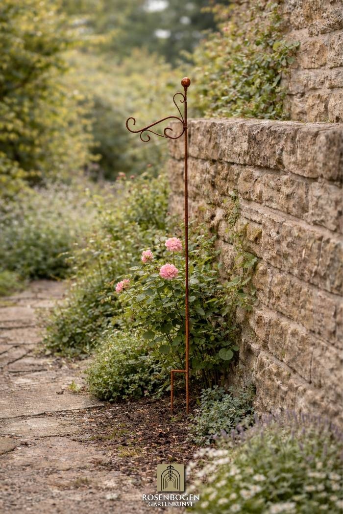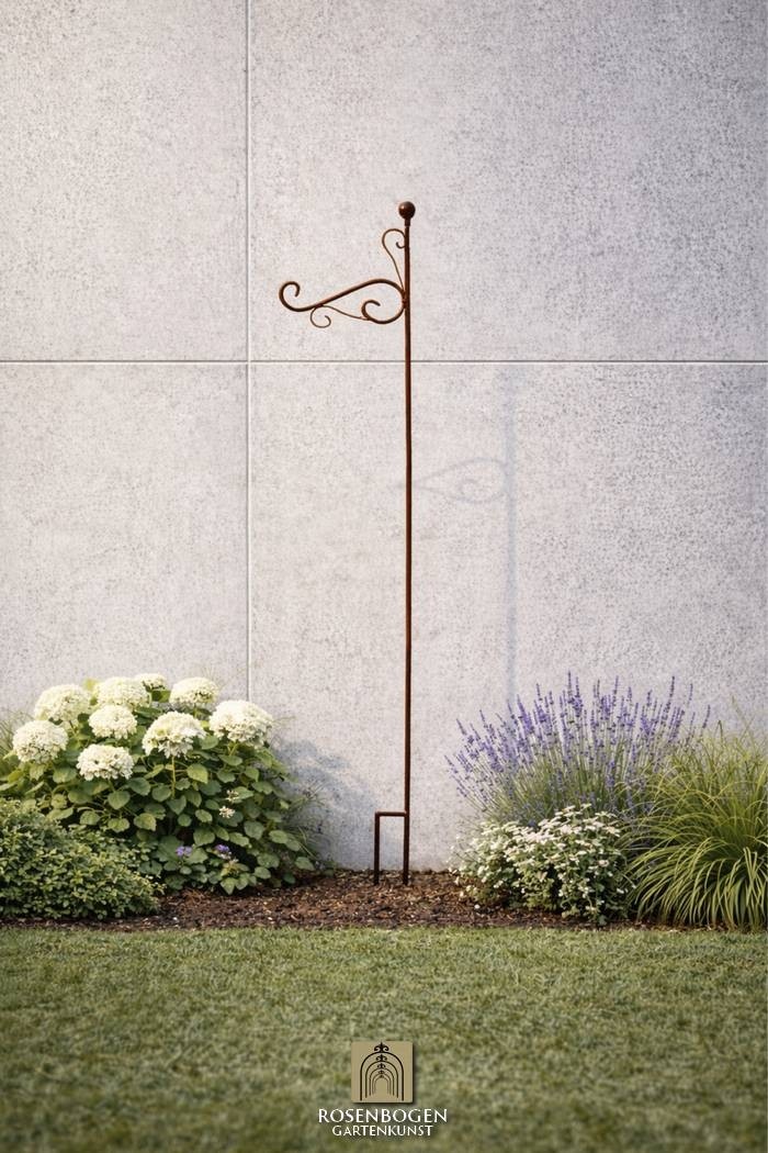 Rankhilfe RUNA – filigrane, 110 cm hohe Gartenstütze mit geschwungenem Design. Für Blumenampeln & Kletterpflanzen. In Rost, Schwarz oder Verzinkt.