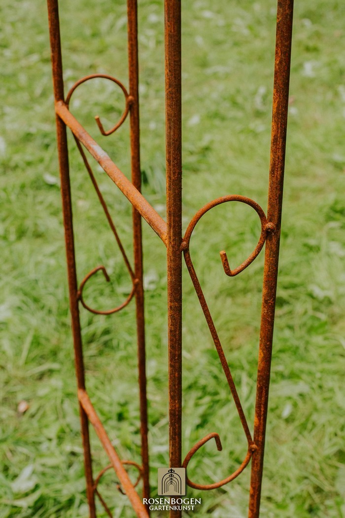 Der Rosenbogen ALEX, aus massivem Eisenmetall, verleiht Vorgärten eine schöne Optik. Er ist in den Größen von 120 cm bis 260 cm, in Edelrost-Optik und in der schwarzen oder verzinkten Version erhältlich.
