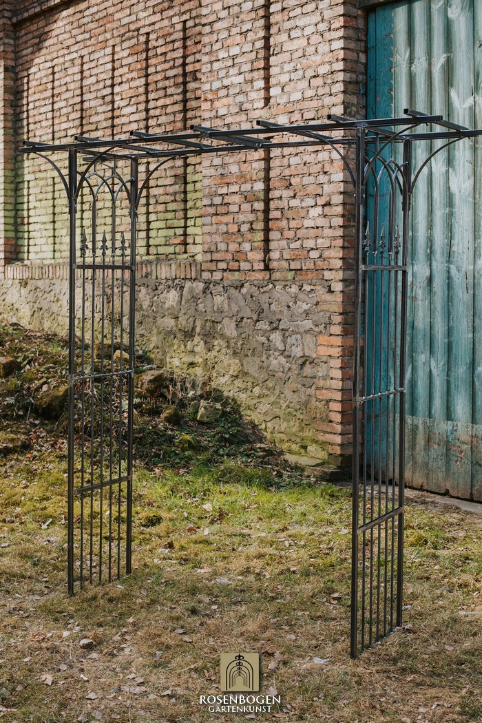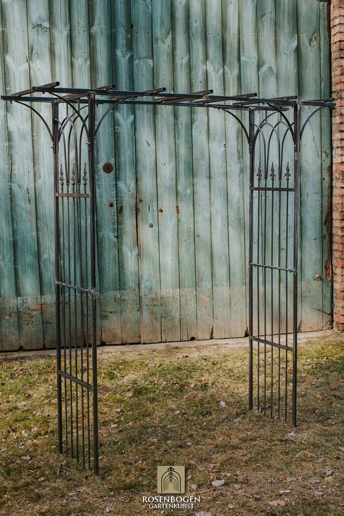 Der Rosenbogen besteht aus Vierkantrohr + Draht, ist in der Breite von 200 cm erhältlich.