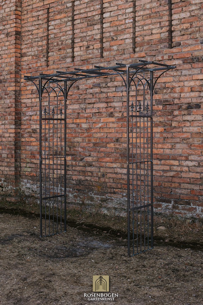 Dieser starke Rosenbogen besteht aus Vierkantrohr und ist sehr robust, stabil und modern. Wir bieten den Rosenbogen in der Rost-Optik, in der verzinkten und schwarzen Ausführung an. Der Rosenbogen aus hochwertigem Metall ist die perfekte Rankhilfe für alle Kletterpflanzen wie Rosen. Die Durchgangshöhe des Rosenbogens ist für jeden ausreichend. Die schwungvollen Dekorationen und das minimalistische Form gewährleisten viele Gestaltungsmöglichkeiten für Ihren Garten. Er dient auch ohne Bepflanzung als sehr edles, dekoratives Gartenelement.