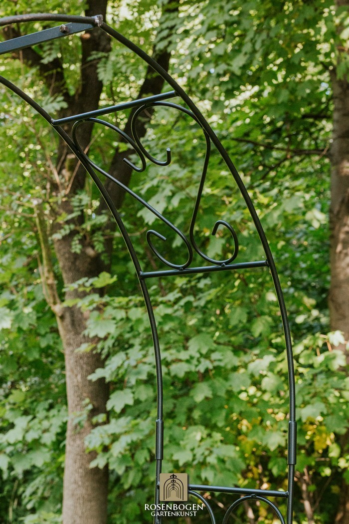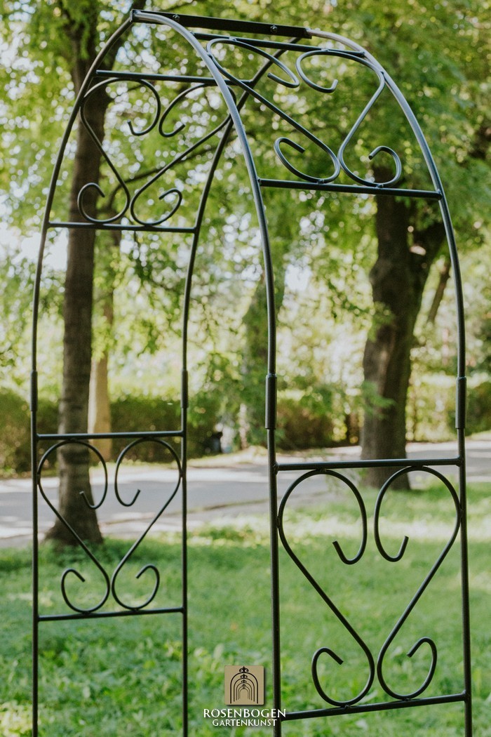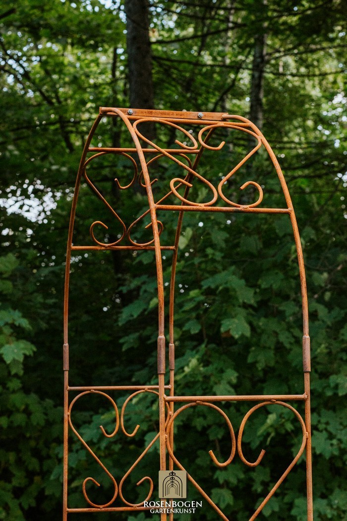 Rosenbogen CLARA, 120 cm breit, aus massivem Eisenmetall, in der Edelrost-Optik oder in der schwarzen oder verzinkten Ausführung