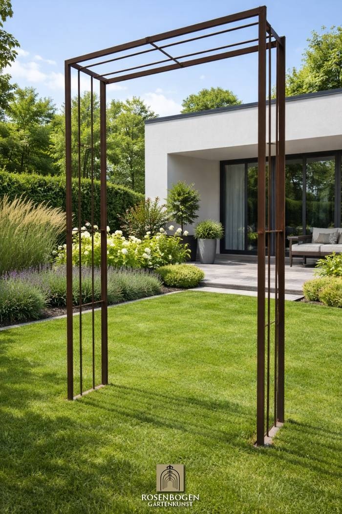 Rosenbogen EMMA QUADRAT aus massivem Stahl – handgefertigt & ISO 9001 zertifiziert. Erhältlich in 120 und 140 cm Breite sowie in Rost, Schwarz pulverbeschichtet und Feuerverzinkt. Extrem stabil für Rosen, Glyzinien und Kletterpflanzen.