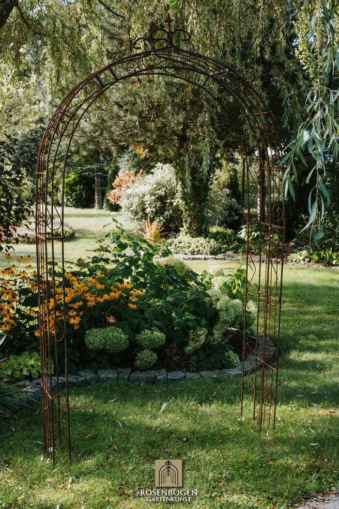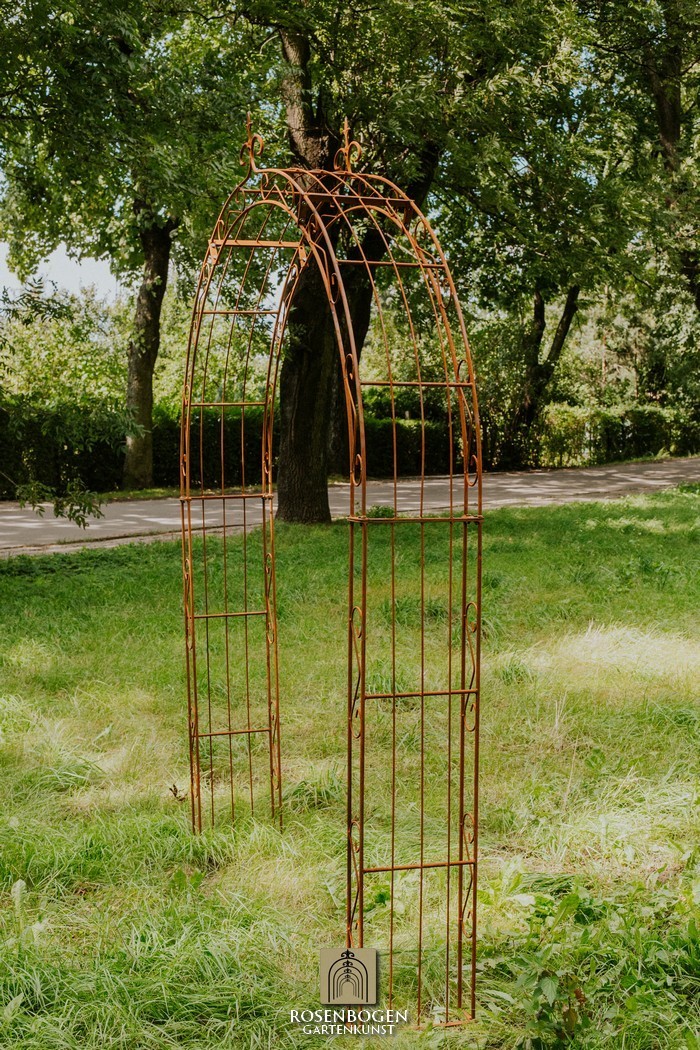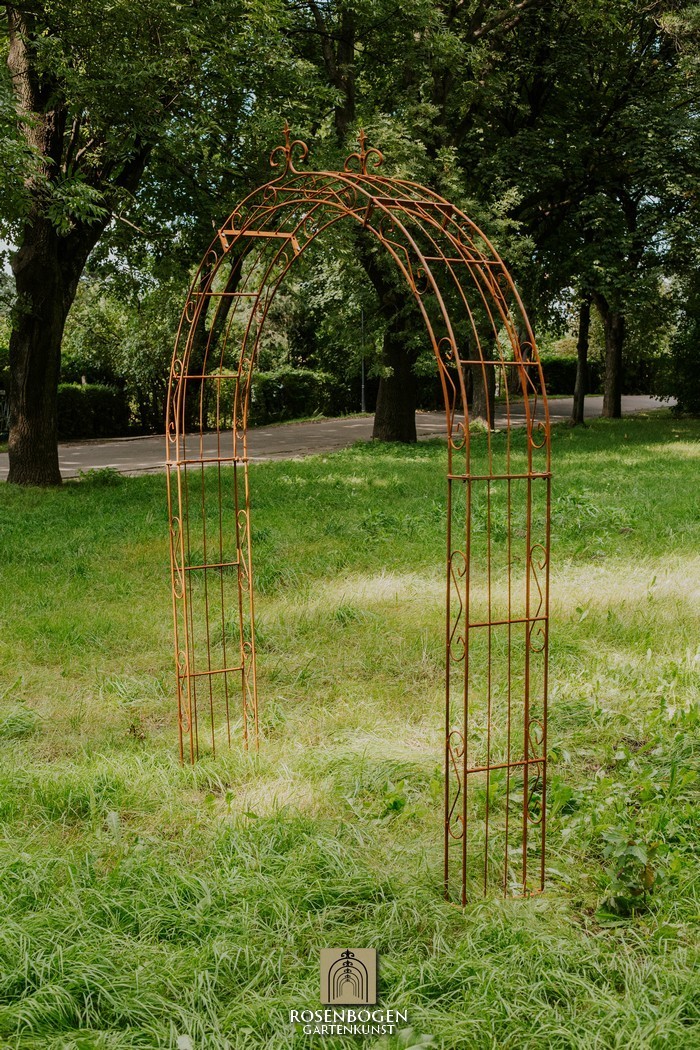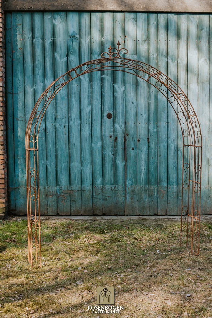 Rosenbogen aus massivem Eisen, Breite von 120 cm bis 260 cm, erhältlich in den Ausführungen Rost-Optik, schwarz, verzinkt