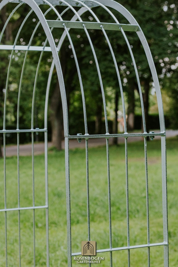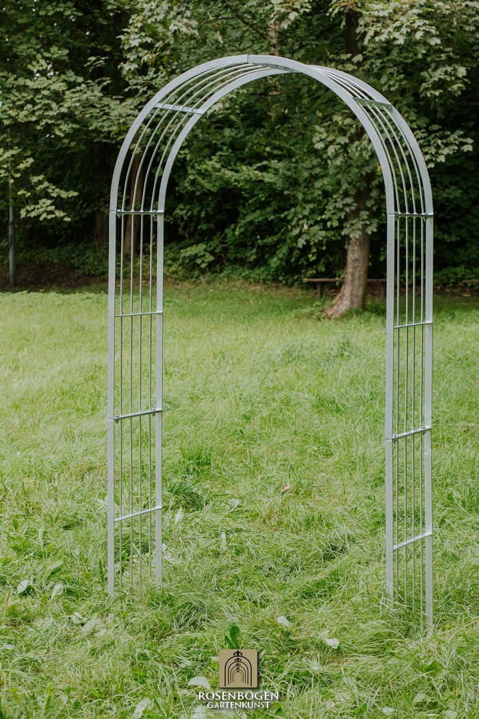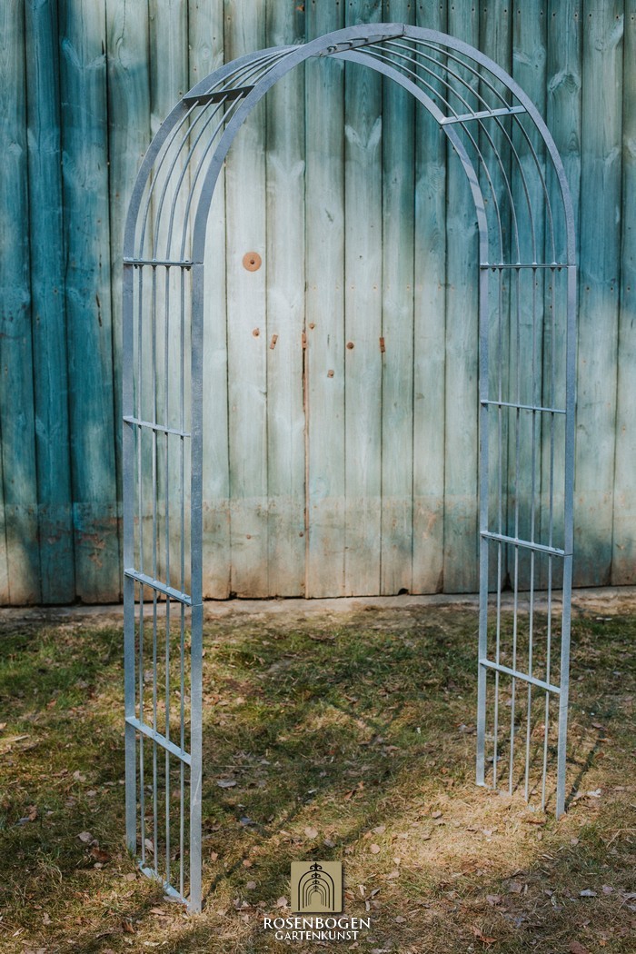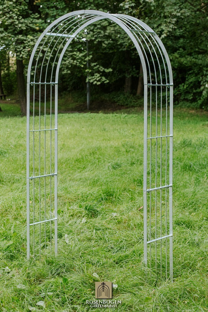 Der Artikel ist im Onlineshop auch in verzinkt und pulverbeschichtet erhältlich. Weitere Rosenbögen in anderen Abmessungen finden Sie in unserem Onlineshop.
