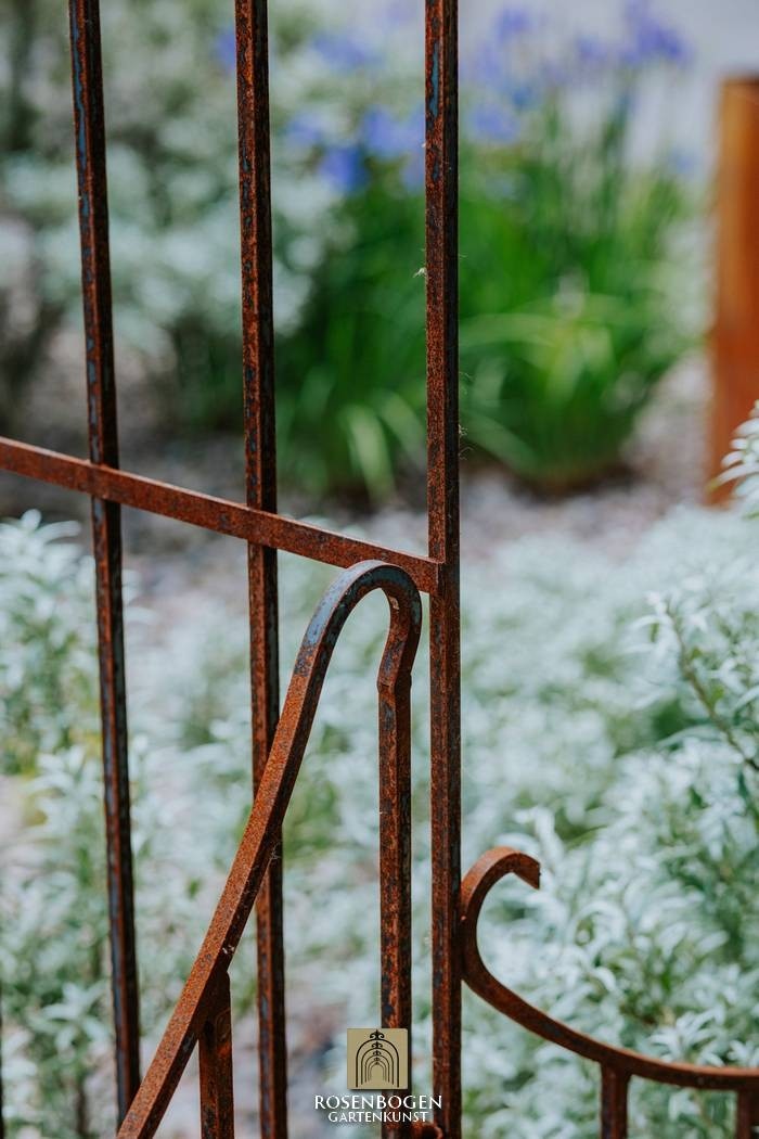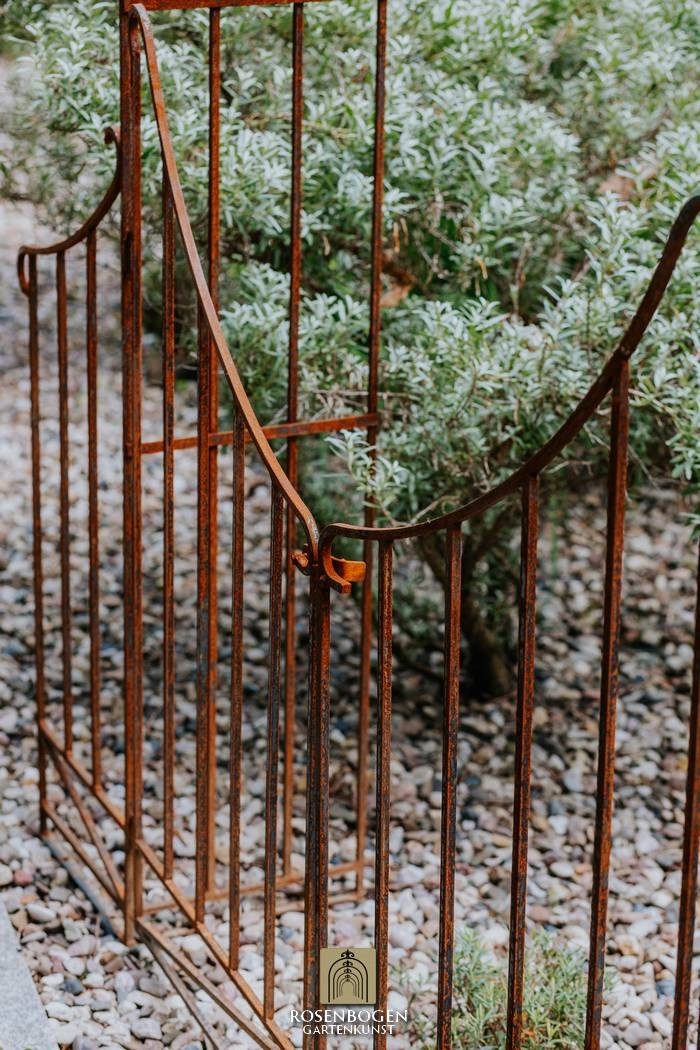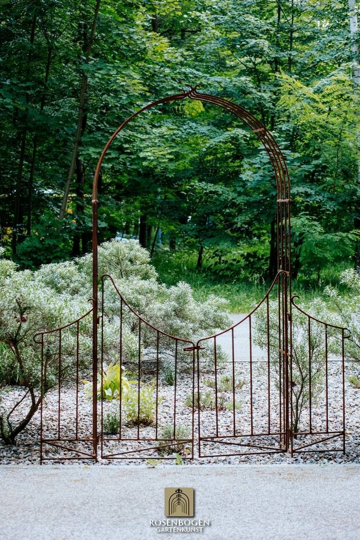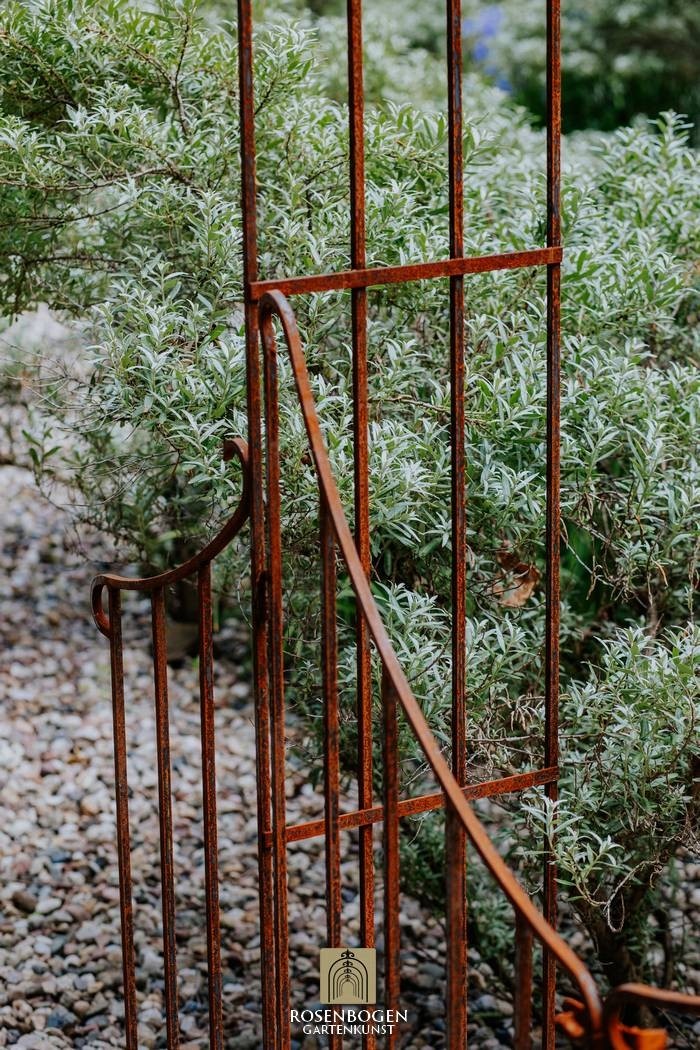 Der Rosenbogen Livia mit elegantem Tor bringt romantisches Flair in deinen Garten. Gefertigt aus stabilem 10x10 mm Vierkantstahl, ist er wahlweise in Edelrost, Feuerverzinkung oder pulverbeschichteter Farbe erhältlich. Perfekt als Eingangsportal oder dekorativer Blickfang für Kletterpflanzen!