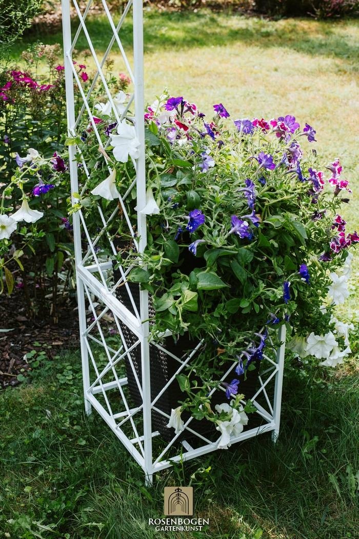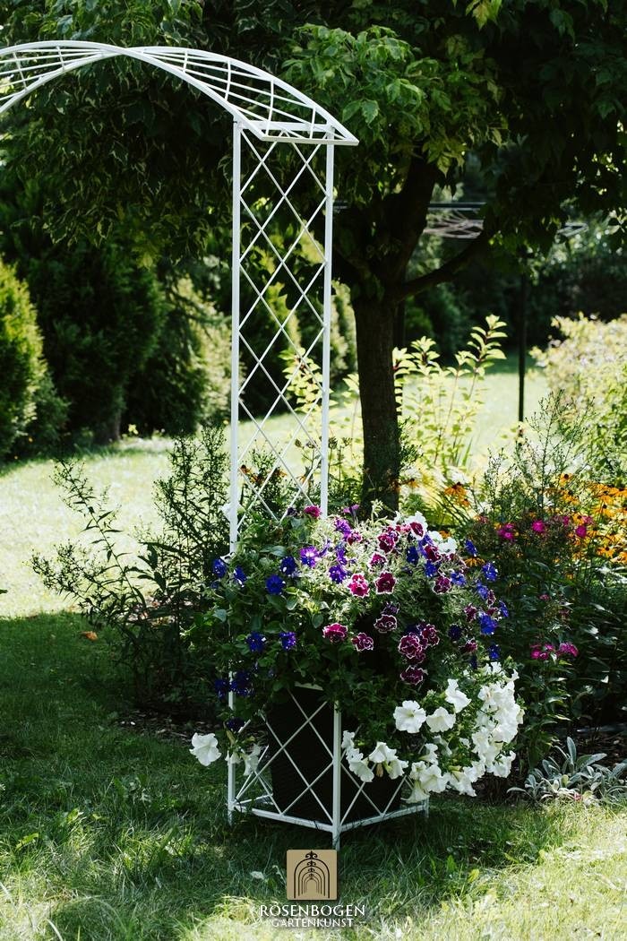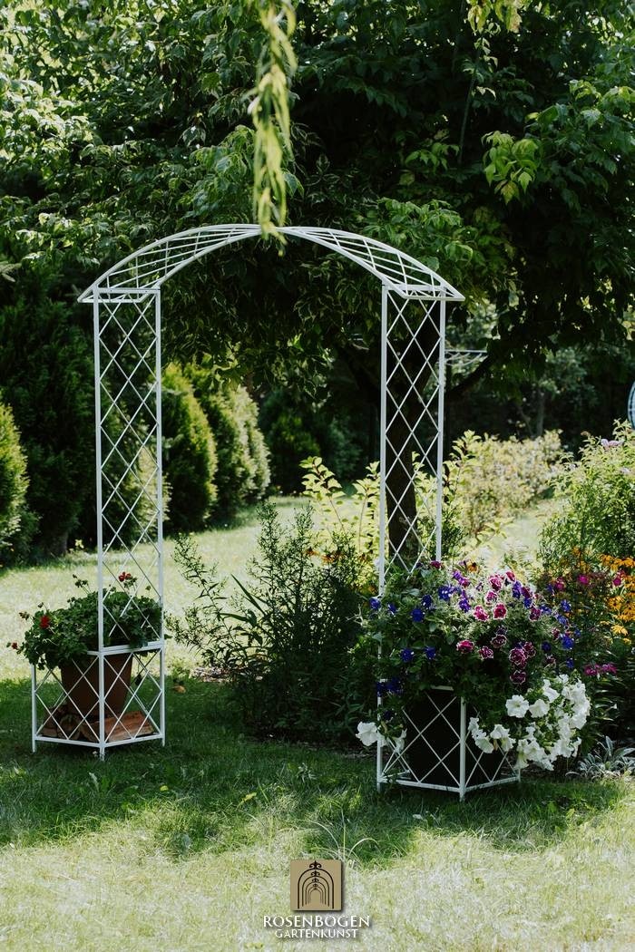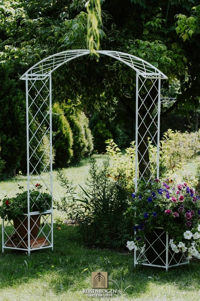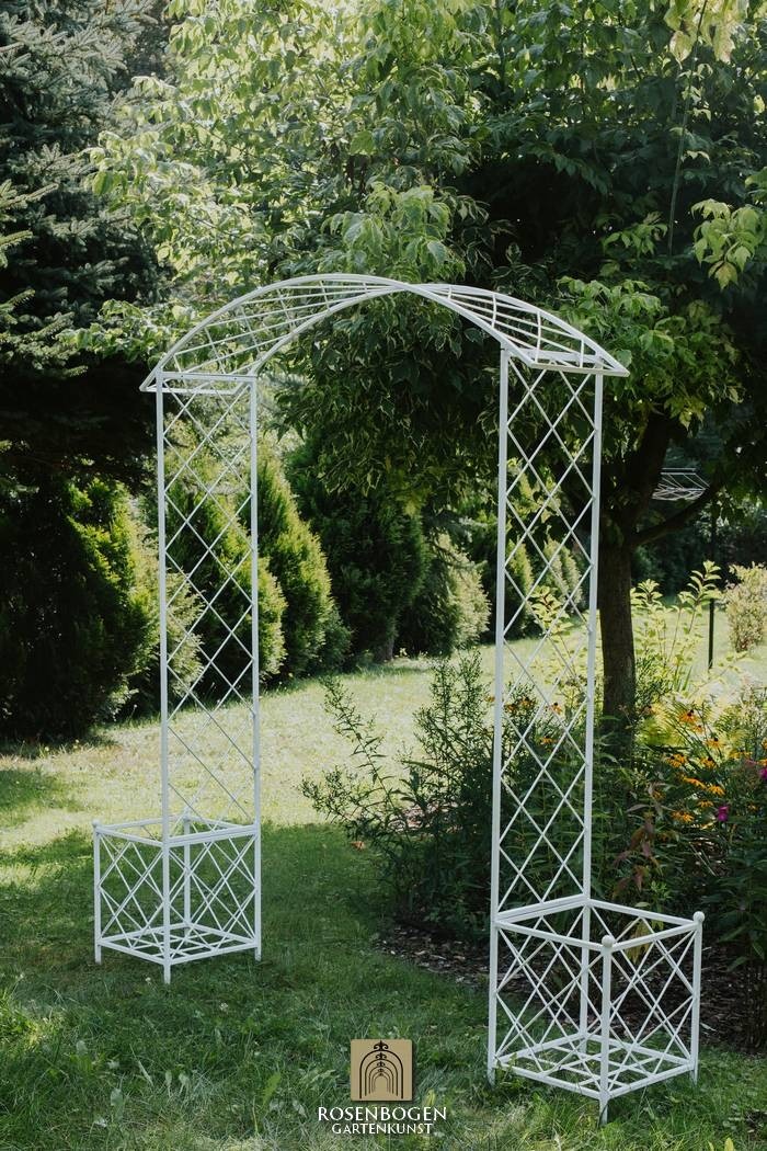 Unser exklusiver Rosenbogen SABINE mit zwei integrierten Pflanzkübeln vereint Funktionalität und Design in höchster Qualität. Mit einer Breite von 230 cm bietet er ausreichend Platz für Kletterrosen und andere Rankpflanzen, während die stabilen Pflanzkübel zusätzlichen Gestaltungsspielraum für Blumen oder Kräuter schaffen.