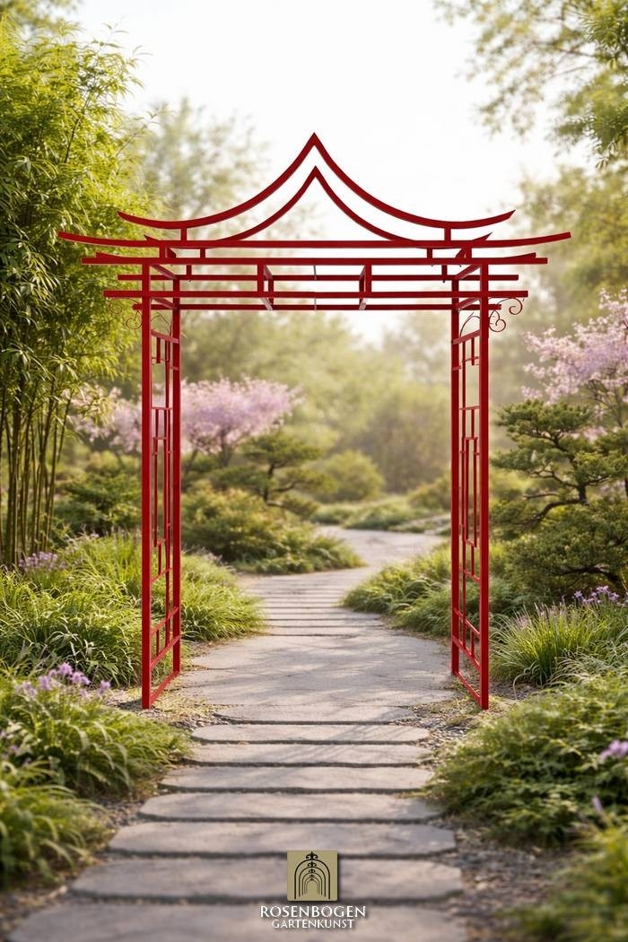 Ein außergewöhnlicher Rosenbogen für alle, die ihren Garten mit einer Note fernöstlicher Raffinesse aufwerten möchten.