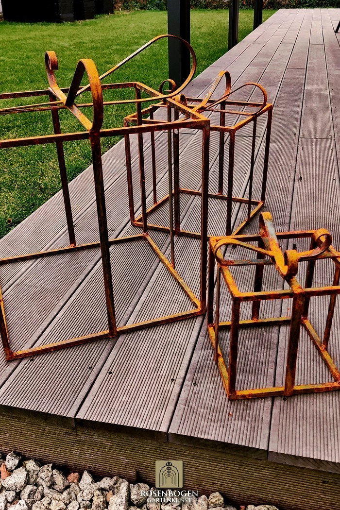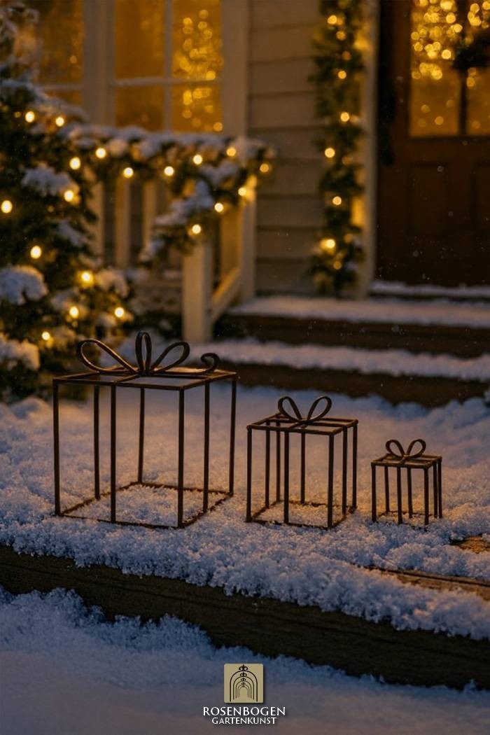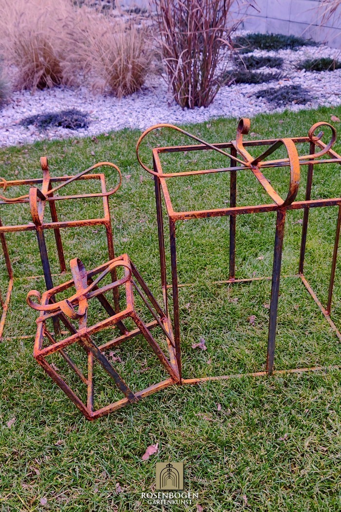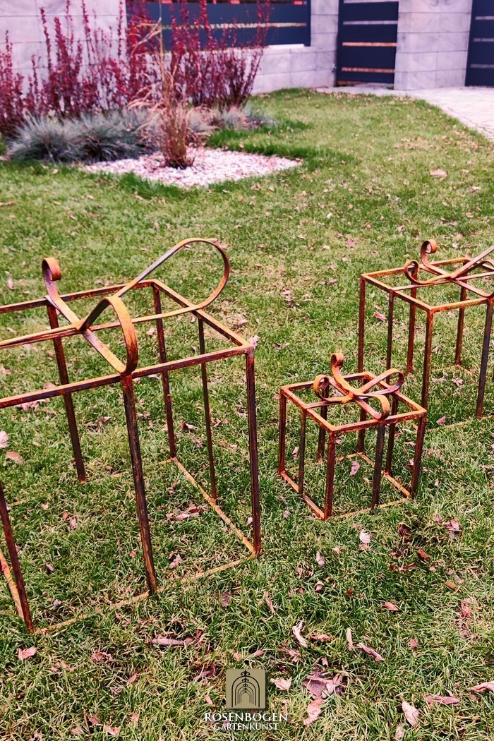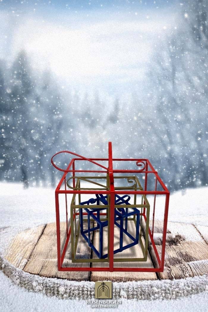 Geschenke 3 set - Weihnachtsdekoration. Alles in Farbe oder Rost. Kleines Geschenk in blau, mittel gelb, groß rot