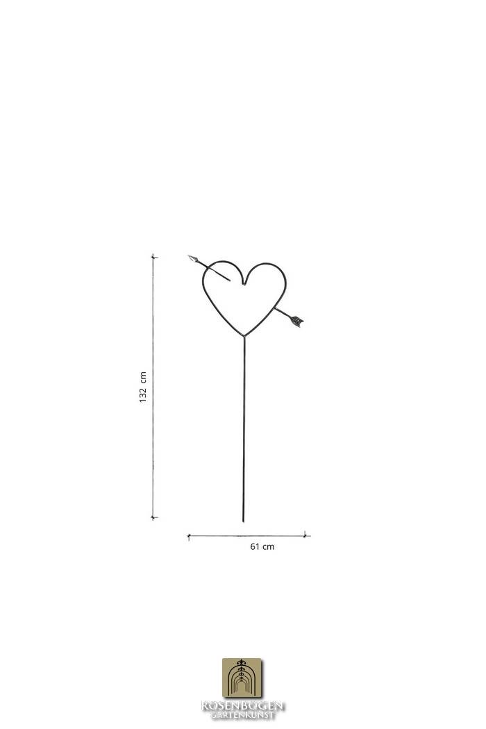 Mitten ins Herz: Unser Gartenstecker Herz 2 mit durchbohrender Pfeilspitze ist mehr als nur Dekoration – es ist ein Symbol für echte Gefühle. Mit einer Höhe von 132 cm und einer Breite von 61 cm wird es zum ausdrucksstarken Highlight in jedem Garten oder Blumenbeet.