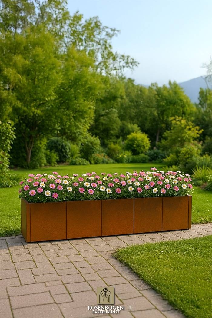 Gefertigt aus starkem Metall (2 mm dick) und mit einer speziellen Korrosionsschutzbehandlung versehen, ist dieser Kübel äußerst robust und witterungsbeständig. Egal, ob es regnet, schneit oder die Sonne scheint – Ihr Pflanzkübel Bona XXL bleibt stets stabil und widerstandsfähig. Zudem haben Sie die Wahl zwischen verschiedenen Oberflächen: Rost, Corten oder eine Pulverbeschichtung in einer Farbe Ihrer Wahl, damit der Pflanzkübel perfekt zu Ihrer Gartengestaltung passt.
